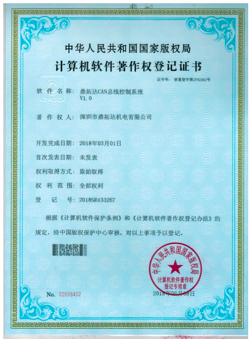 首頁->產品認證->鼎拓達CAN總線控制系統V1.0