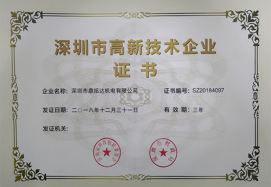 深圳市高新技術企業證書